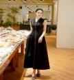 เดรสสีดำแขนกุดเทคเจอร์ผ้าทอสวยมาก เป็นทรงซิปหน้า