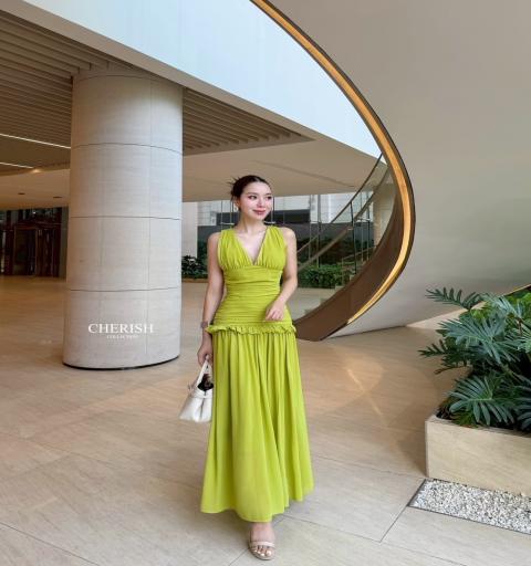 เดรสยาวสุดหรู ดูแพง เดรสคอวีช่วงอกมีฟองน้ำ