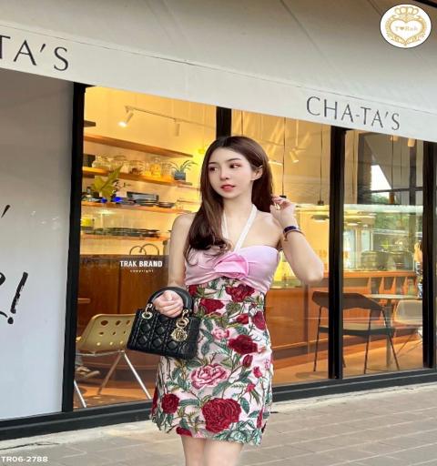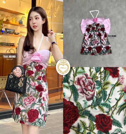DETAIL : เดรสสั้นเกาะอกช่วงอกแต่งสีชมพูติดดอกกุหลาบ แต่งสายคล้องคอสีขาว กระโปรงเป็นลายกุหลาบปักฉลุสีสันสวยงาม เนื้อผ้าดีมีซับในค่ะ