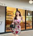 เดรสสั้นเกาะอกช่วงอกแต่งสีชมพูติดดอกกุหลาบ