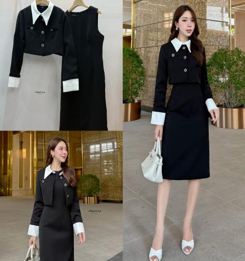 🏷Detail : •ชุดเดรสทรงสุภาพ เรียบหรูดีไซน์ สีดำตัดกับปกและปลายแขนเสื้อสีขาว เดรสมีฟองน้ำในตัว ซิปหลัง ผ่าหลังเล็กน้อยเพื่อให้เดินได้สะดวก เพิ่มมิติและความโดดเด่นด้วยสีขาว เดรสคัตติ้งเข้ารูป ช่วยเสริมลุคให้ดูเพรียวและสง่างาม ความยาวระดับเข่า  เสื้อคลุมปกสีขาวกระดุมจริงด้านหน้า แต่งกระเป๋าหลอก ใช้ผ้าเดียวกัยวทั้งเซ็ท เหมาะสำหรับใส่ทำงาน ประชุม หรือออกงานทาง ผ้าดี คงรูปสวย ไม่ยับง่าย มีซับในทั้งชุด ให้ลุคที่ดูแพงทุกมุมมอง ดีไซน์ที่ผสมความหวานและความโก้อย่างลงตัว ทำให้สามารถใส่ได้ทั้งลุคทางการและลุคสบายแบบผู้ดี