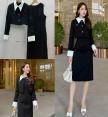 Varinda    ชุดเดรสทรงสุภาพ เรียบหรูดีไซน์ สีดำตัดกับปกและปลายแขนเสื้อสีขาว  [พร้อมส่ง]