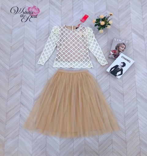 Set เสื้อลูกไม้แขนยาวกับกระโปรงยาว มีเข็มกัดดอกไม้ให้ 1 ดอก