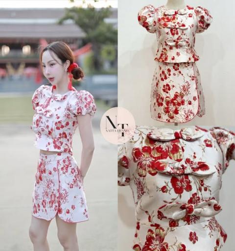 เตรียมพร้อมเทศกาลตรุษจีน   พร้อมส่ง SIZE M  NEW ARRIVAL   ราคา990 บาท   งานป้าย : NATTA BRAND ♡DETAILS♡ Set 2 ชุด งานผ้าทอลายดอกไม้สีแดง เสื้อแขนตุ๊กตา แต่งดีเทลโบว์ด้านหน้า เป็นซิปหลัง มาพร้อมกระโปรงมีซับในกางเกง มีซับในอย่างดีทั้งชุดค่ะ  S Sold out  M * Bust 34" / Waist 28" / Hip 38”  L sold out   ขนาดไซต์ที่แจ้ง วัดจากสินค้าจริงตามสายวัด แพทเทิร์นแต่ละชุดอาจจะมีการคลาดเคลื่อน +1"/-1" Color : ตามภาพ (สีและแสงของชุด ต่างกันขึ้นอยู่กับแสงที่ใช้ถ่ายและกล้องที่ใช้ถ่าย 5-10% นะคะ)  นางแบบใส่จากงานจริงค่ะทุกแบบนะคะ  |
