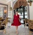 เดรสสูท5ส่วนสีแดงแขนยาว คอปก ช่วงขอบแต่งเพชรวิ๊งๆ