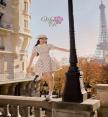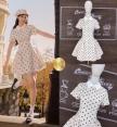เดรสแขนสั้น คอปกสีขาว ซิปหลัง ช่วงสะโพกเย็บจีบพอง กระโปรงบาน