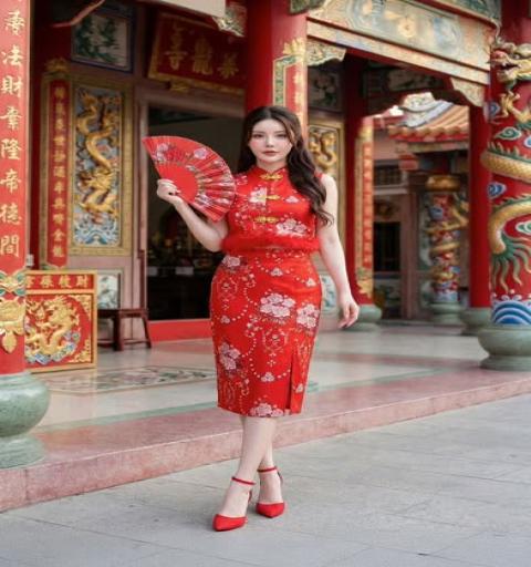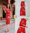 Set เซ็ตกี่เพ้า เสื้อแขนกุดกับกระโปรงยาว 5 ส่วน