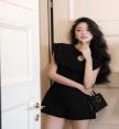 จั้มสูทขาสั้น แขนกุดตัวสวย เก๋ด้วยช่วงอกซ้อนชั้นผ้าคล้ายคลุมไหล่