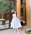 เดรสตัวยาว แขนสั้น คอบัว ซิปหลัง เนื้อผ้าอย่างดี มีน้ำหนัก ใส่สบาย ผ้าเรียบ