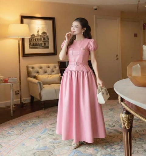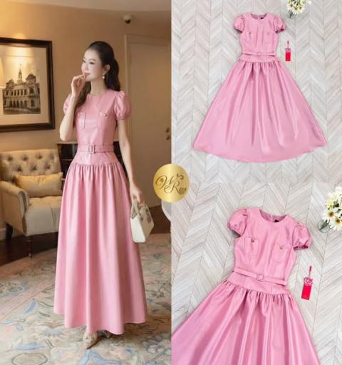 เดรสแขนตุ๊กตาตัวยาวสวย ช่วงตัวเข้ารูป อกแต่งกระเป๋าเพิ่มความเก๋
