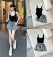 Set เสื้อบอดี้สูททรงเข้ารูป เก็บสรีระสวยแนบตัวแมตช์กับกระโปรงยีนส์สั้น ให้ลุคดูขาเรียวยาวและเพิ่มความเก๋แบบสตรีทโมเดิร์น