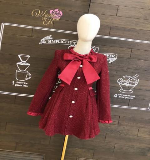 เดรสแขนยาวตัวสั้นสวยตัวเดรสมาในผ้าทวิตเนื้อสวย รอบคอจีบระบายสวย