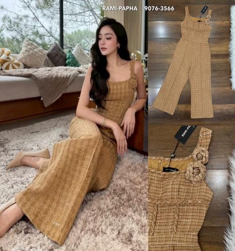 ⚜️Ready to shipping ⚜️Label :: RAMI-PAPHA(รมิปภา) จั๊มสูทขายาว เนื้อผ้าทวีตผสมดิ้งวิ้งโทนสีน้ำตาล ดีเทลด้านหน้าสวยเก๋ อกมีฟองน้ำจัดให้ทรงสวย ซับในขาสั้นซิปหลัง ++เข็มกลัด 2ชิ้น ดอกเล็ก และดอกใหญ่ เนื้อผ้าโทนสีเดียวกัน สามารถปรับแมทได้หลายสไตล์