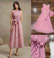 เดรสตัวยาว สวยหรูโดดเด่น เนื้อผ้า3Dทั้งตัวโทนสีชมพูสวยหวาน