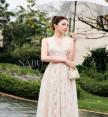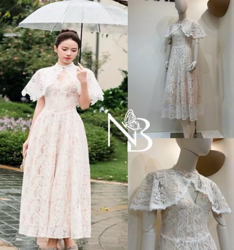 ชุดเซ็ท เสื้อคลุม+เดรสลูกไม้ยาว ดีไซน์หรู ตัวเดรสยาวทรง A-Line