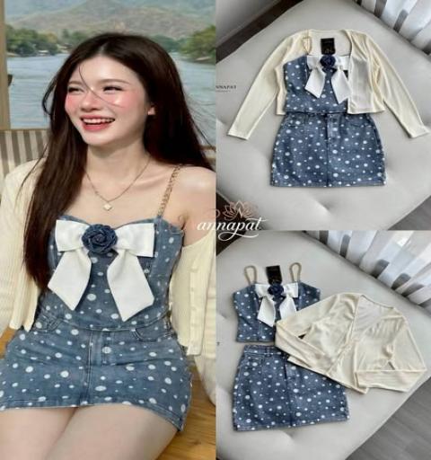 TAG :: NANNAPAT (NP)  CONCEPT :: งานต้อง Premium กำไรน้อยไม่ว่า คุณภาพ เละ เนื้อผ้าต้องดี  ♡DETAILS♡   "สวยครบจบในเซตเดียว! ได้ถึง 3 ชิ้น (เสื้อครอป+กระโปรง+คาดิแกน) ด้วยเซตยีนส์ลายจุดที่ตะโกนคำว่า 'น่ารัก' ออกมาดังมากกก ดีเทลโบว์ขาวตัดกับดอกกุหลาบยีนส์คือที่สุด ใส่แล้วดูเป็นสาวหวานที่มีความมั่นใจ ถ่ายรูปมุมไหนก็ขึ้นกล้อง เตรียมตอบคำถามเพื่อนได้เลยว่า 'ซื้อชุดที่ไหน!'"  COLOR 》》》  NP. STANDARD SIZE  ( Size โดยประมาณนะค่ะ + -1") S }} Bust 32"/ Waist 26"/ Hip 36" M }} Bust 34"/ Waist 28"/ Hip 38" L }} Bust 36"/ Waist 30"/ Hip 40" XL }} Bust 38"/ Waist 32"/ Hip 42" Langth }} = Shirt 18,17" / Skirt 17"  Care Dry clean only ควรซักแห้ง หรือ ซักมือ และเลี่ยงน้ำยาซักผ้า เพื่อเป็นการถนอมผ้า และ ลดความเสียหายวัสดุตกแต่ง นะคะ  ตรวจสอบสินค้าทุกครั้งก่อนออกจากร้านนะคะ จะได้ไม่เสียเวลาคะ  เปลี่ยนคืนสินค้ามีตำหนิต้องภายใน 10 วันนะคะ ป้ายไม่ตัด ห่อเดิมนะคะ  ได้รับสินค้าแล้ว ถ่ายวีดีโอตอนแกะเช็คสินค้าทุกครั้ง เผื่อมีปัญหา จะได้ใว้ยืนยันเพื่อการเปลี่ยนคืนนะคะ |