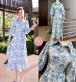 เดรสยาวคลุมเข่าคอปกกระดุมหน้าแต่งแขนยาวปลายแขนสม็อค