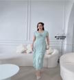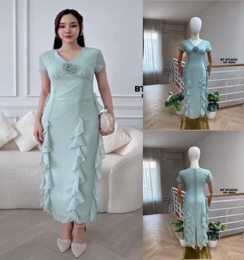 DETAIL :ชุดเซท 2 ชิ้น เดรสยาวแขนสั้นคอวี จับจีบช่วงอกเล็กน้อย มีระบายหน้าหลังและด้านข้าง ผ่าหลัง มาพร้อมเข็มกลัดดอกไม้ มีซิปหลัง งานซับในทั้งตัว