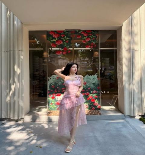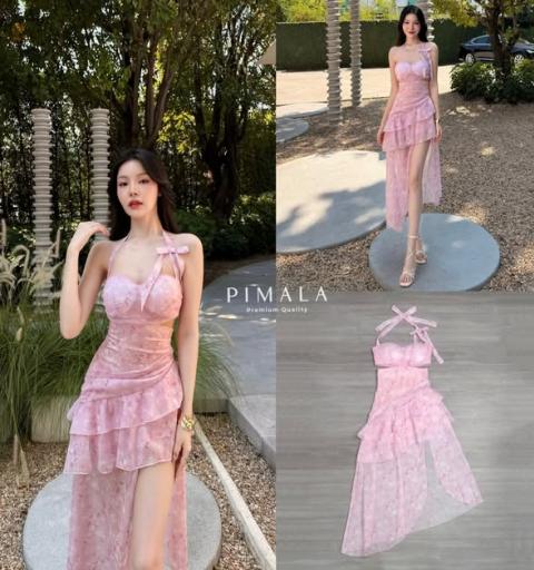เดรสยาวที่สวยมากก หวานละมุน ลายผ้าpink sweetน่ารักสุดๆ