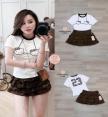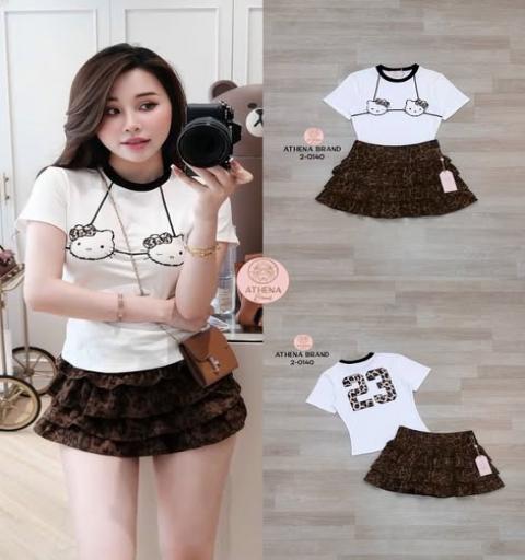 เสื้อยืดคอกลมดีไซน์พิมพ์ลายน่ารัก แมตช์มาคู่กับกระโปรงลายเสือแต่งระบายเป็นชั้นๆ