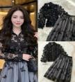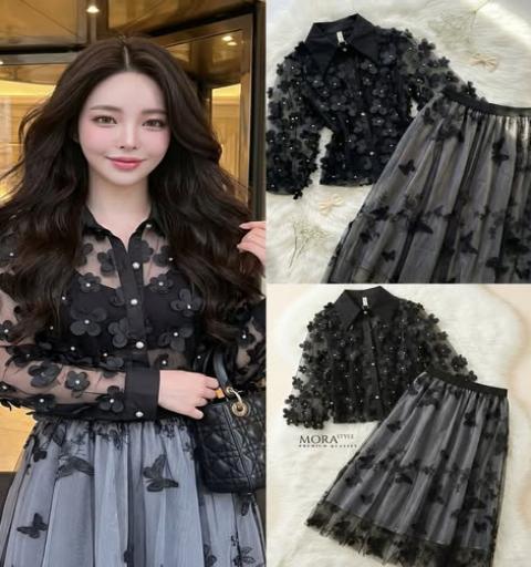 Set 2 ชิ้น เสื้อซีทรูแขนยาวแต่งหมุดดอกไม้