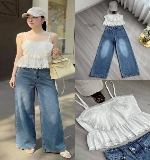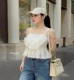 เสื้อสายเดี่ยวสีขาวออฟไวท์ โดดเด่นด้วยงานระบายชั้น (Layered Ruffles)