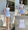 มาใหม่ชีเสิร์ฟละ เซ็ทเสื้อสายเดี่ยวเย็บพับขอบคาดดอกไม้คุณหนู