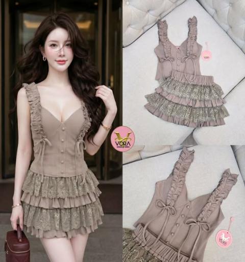 Detail : Set เสื้อสายเดี่ยวแต่งระบายช่วงสาย แต่งโบว์ด้านหน้า อกมีฟองน้ำจัดทรงให้ค่ะ แต่งกระดุมเรียงด้านหน้า แมทช์กับกระโปรงสั้นแต่งระบายชั้นสลับผ้าลูกไม้ มีกางเกงขาสั้นด้านในไม่ต้องกลัวโป๊เลยค่ะ เอวสม็อคยืดหยุ่น เนื้อผ้าร่องยืดหยุ่นเนื้อดี สามารถแยกแมทช์กับชุดอื่นได้อีกเยอะเลยค่า... ใส่ออกมาแล้วเป๊ะเว่อร์ แพทเทรินเนี๊ยบสุดๆ สามารถใส่ได้ในทุกโอกาสเลยค่า...