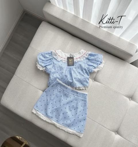 Set (2) ชิ้น เสื้อ+กระโปรง สไตล์โทนฟ้าใส สไตล์คุณหนูหวานๆ