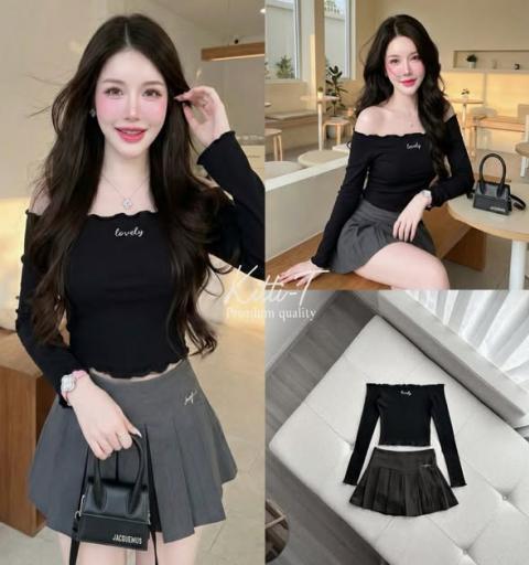 Set (2) ชิ้น เสื้อ+กระโปรง ชุดเซตนี้มาในสไตล์ All Black ที่ให้ลุคเท่