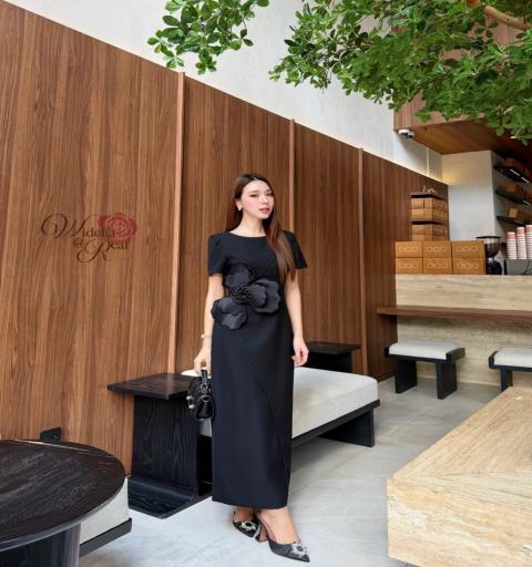 Detail >> Dress เดรสตัวยาว แขนสั้น เอวเย็บแต่งดอกไม้ ซิปหลัง ผ้าเรียบ สีพื้น ผ้าอย่างดี มีน้ำหนัก ใส่สบาย งานคัตติ้งเนี๊ยบ ทรงเป๊ะ ชุดนี้งานสวยมากค่ะ #เดรสสาวเกาหลี #เดรสสาวแกรม #เดรสluxury #ชุดแบรนด์Widelia@real