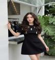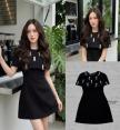 ชุดสีดำล้วน คอกลมเย็บผ้าคลุมไหล่ ดูราชนิกุลมาก