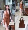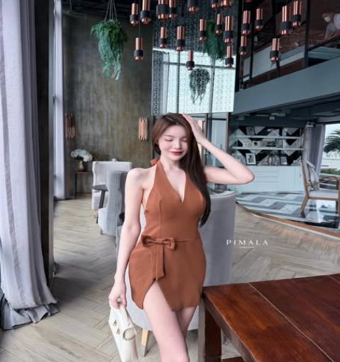 เดรสทรงสวยแซ่บ โทนสีbrown glamsๆเป็นสีมีเทสใส่ออกงานได้เลย
