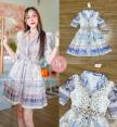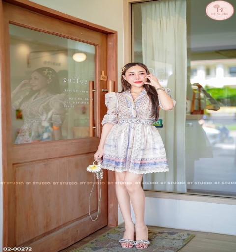 เซท 2 ชิ้น เดรสสั้นแขน 4 ส่วน คอปกกระดุมหน้างานสวยพิมพ์ลายตามแบบ