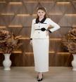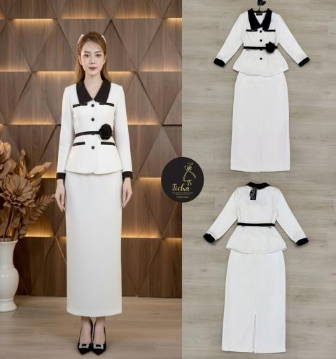 👗👗Detail : Set2ชิ้น เสื้อทรงสูทแขนยาวคอปกใหญ่สีดำ แต่งกระดุมด้านหน้า ช่วงอกแต่งกุ้นขอบกระเป๋าสีดำและแต่งกุ้นปลายแขนสีดำสามารถใช้งานได้จริง ชายเสื้อบานออกเล็กน้อย ( บ่าเสริมฟองน้ำ ) มาพร้อมเข็มขัดสีดำและเข็มกลัดดอกไม้ดอกใหญ่เข้าชุด แมตช์กับกระโปรงยาวทรงสอบ แต่งผ่าหลัง (มีซิปหลัง) เย็บซับในอย่างดี ทรงสวยเรียบหรูดูแพง บอกเลยว่ารุ่นนี้สวยมาก❤️
