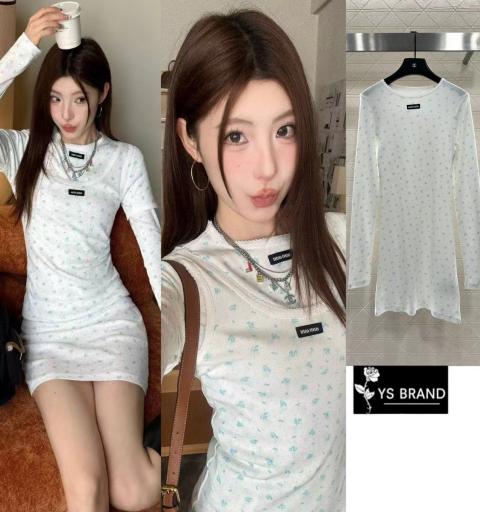 Brand: miu miu Detail :เดรสผ้ายืดแขนยาว ผ้ายืดเนื้ออย่างดี ผ้าดีมากๆ ยืดตามตัว เย็บ miu miuช่วงอก น่ารักมากๆสวยโดดเด่นสุดๆ มาพร้อมป้าย Tag miu miu ครบสวยมาก งานคุณภาพ ห้ามพลาด จัดเลยจ้า