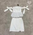 เดรสเกาะอกสีขาวแขนโบว์งานลูกไม้ฉลุ มาคู่กับกระโปรงสอบตัวสั้นสีขาว