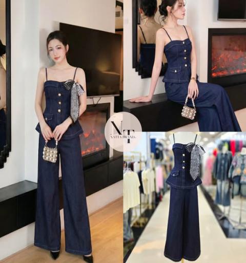 NEW ARRIVAL   ราคา990 บาท   งานป้าย : NATTA BRAND ♡DETAILS♡ Setผ้ายีนส์ 3 ชิ้น เสื้อสายเดี่ยวปรับสายได้ ดีเทลแต่งกระดุมสีทองด้านหน้า มีกระเป๋าหลอกมาให้ ซิปซ้อนด้านหลัง มีฟองน้ำอย่างดีในชุด มาคู่กับกางเกงขายาวทรงกระบอก ความยาวกำลังดี มีกระเป๋าข้าง 2 ข้าง ผ้าหนากำลังดี มีผ้าซับในอย่างดีในชุด แถมผ้าผูกโบว์ลายสวยให้ในเซ็ตด้วยค่าา คุ้มมากกกก S * Bust 32" / Waist 26" / Hip 34“ M * Bust 34" / Waist 28" / Hip 36” L * Bust 36" / Waist 30" / Hip 38“ XL * Bust 38" / Waist 32" / Hip 40“  ขนาดไซต์ที่แจ้ง วัดจากสินค้าจริงตามสายวัด แพทเทิร์นแต่ละชุดอาจจะมีการคลาดเคลื่อน +1"/-1" Color : ตามภาพ (สีและแสงของชุด ต่างกันขึ้นอยู่กับแสงที่ใช้ถ่ายและกล้องที่ใช้ถ่าย 5-10% นะคะ)  นางแบบใส่จากงานจริงค่ะทุกแบบนะคะ  |