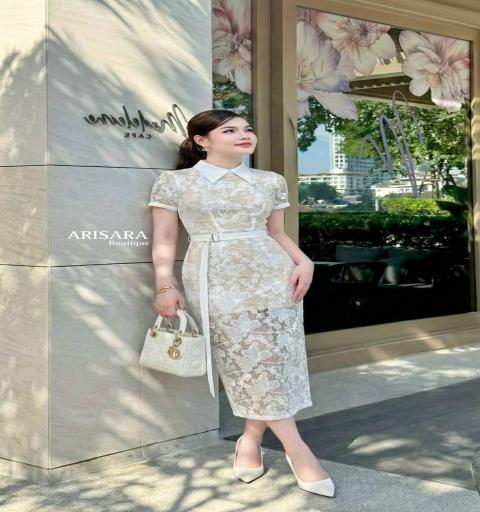 ชุดเดรสลูกไม้ ผ้างานเกาหลี มาพร้อมเข็มขัด