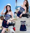 ชุดเซ็ต 2 ชิ้น เสื้อเกาะอก แต่งอะไหล่สีทองด้านหน้า+กระโปรงซับในกางเกง
