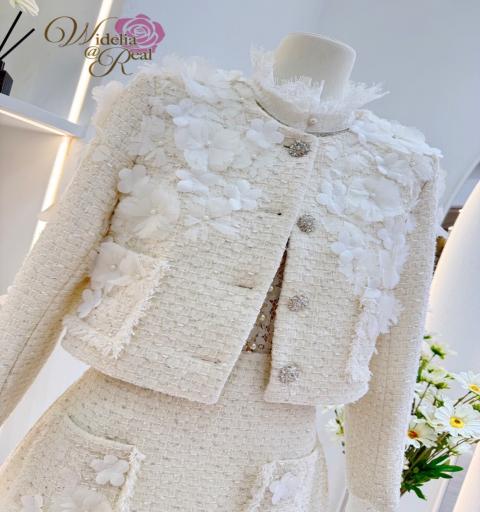 Detail >> Set 3 ชิ้น ทรงเก๋ สไตล์แบรนด์ Hi end เสื้อลูกไม้คอระบายตัวสวยด้วยผ้าลูกไม้ซีทรูเนื้อนุ่มสวยแต่งกระดุมมุข พร้อมเสื้อคลุมแขนยาวตัวนอกแต่งดอกไม้ Pop up กระจายทั่วตัวเสื้อ ด้านหน้าแต่งกระดุมเพชรเม็ดโตโดดเด่น คอมพลีทลุคด้วยกระโปรงตัวสั้นสวยแต่งกระเป๋า ตัวชุดมาในผ้าทวิตเนื้อสวย จับ Match ลุคดูดีสุดๆ ชุดนี้งานสวยมากค่ะ รับรองใส่ออกมาคอมพลีทลุคสุดๆ #ชุดเรียบหรู #ชุดสาวแกรม #ชุด 3ชิ้น #เดรสผ้าทวิต#ชุดluxury #ชุดแบรนด์Widelia@real