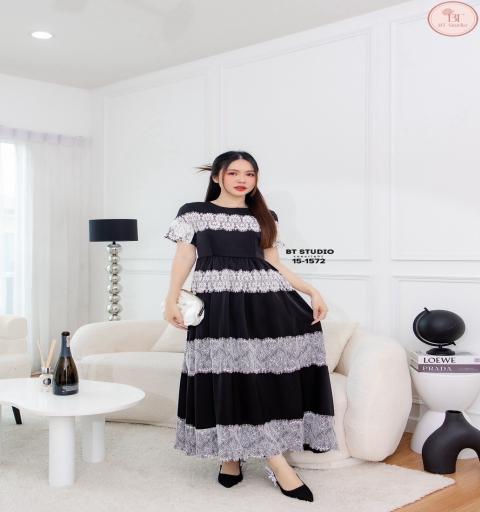 DETAIL : เดรสยาวดีไซส์คอกลม สีดำแต่งตัดสลับกับลูกไม้สีขาว เป็นชั้น ๆ งานสวยเนื้อผ้าดี มีซับในซิปหลังจ้าา