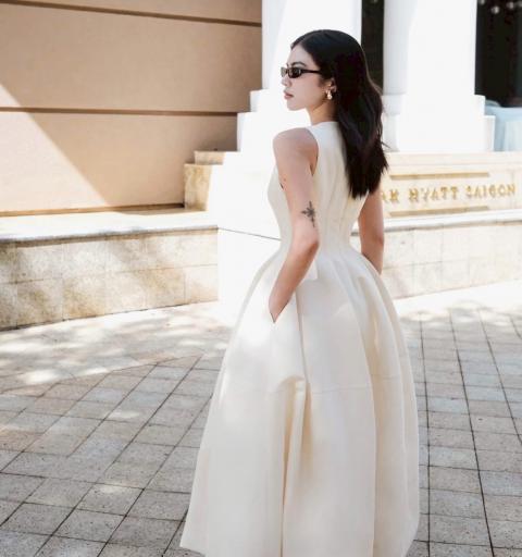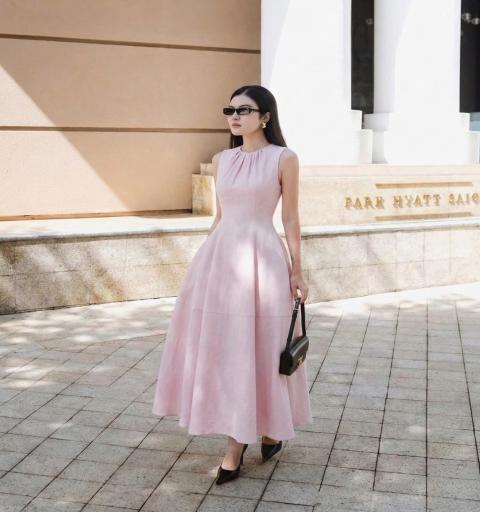 เดรสแขนกุดตัวยาวสวยทรงดี ตัวเดรสมาในผ้าเรียบเนื้อสวยมีน้ำหนักทิ้งตัวสวย