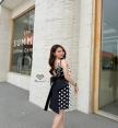เดรสสายเดี่ยวทูโทนขาวดำลายจุดมาพร้อมกับโบว์เข็มขัดใหญ่แยกชิ้น