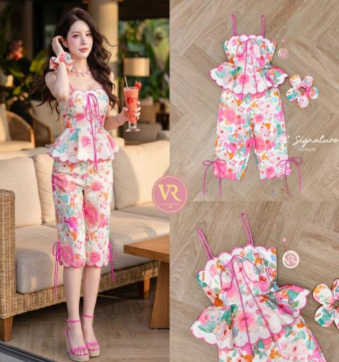 Detail :: Set เสื้อสายเดี่ยว แต่งปักกุ๊นขอบโค้งชายผ้า เอวเข้ารูปแต่งจับจีบชายเสื้อบาน แต่งผูกโบว์ช่วงอก มีฟองน้ำจัดทรงให้ค่ะ แมทช์กับกางเกงสี่ส่วนเข้าชุด แต่งผูกโบว์ช่วงขา มียางมัดผมดอกไม้เข้าชุดให้ด้วยค่ะ คุ้มมากๆ เนื้อผ้าพิมพ์ลายมี texture เป็นทรงสวย สีคมชัด มีซับใน สามารถแยกแมทช์กับชุดอื่นได้อีกเยอะเลยค่า คุ้มมากๆ ต้องมีติดตู้นะค่า... ใส่ออกมาแล้วเป๊ะเว่อร์ แพทเทรินเนี๊ยบสุดๆ สามารถใส่ได้ในทุกโอกาสเลยค่า...
