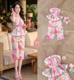 Set เสื้อสายเดี่ยว แต่งปักกุ๊นขอบโค้งชายผ้า เอวเข้ารูปแต่งจับจีบชายเสื้อบาน