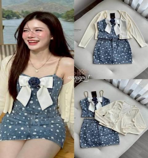 TAG :: NANNAPAT (NP)  CONCEPT :: งานต้อง Premium กำไรน้อยไม่ว่า คุณภาพ เละ เนื้อผ้าต้องดี  ♡DETAILS♡   "สวยครบจบในเซตเดียว! ได้ถึง 3 ชิ้น (เสื้อครอป+กระโปรง+คาดิแกน) ด้วยเซตยีนส์ลายจุดที่ตะโกนคำว่า 'น่ารัก' ออกมาดังมากกก ดีเทลโบว์ขาวตัดกับดอกกุหลาบยีนส์คือที่สุด ใส่แล้วดูเป็นสาวหวานที่มีความมั่นใจ ถ่ายรูปมุมไหนก็ขึ้นกล้อง เตรียมตอบคำถามเพื่อนได้เลยว่า 'ซื้อชุดที่ไหน!'"  COLOR 》》》  NP. STANDARD SIZE  ( Size โดยประมาณนะค่ะ + -1") S }} Bust 32"/ Waist 26"/ Hip 36" M }} Bust 34"/ Waist 28"/ Hip 38" L }} Bust 36"/ Waist 30"/ Hip 40" XL }}  สินค้าหมดคะ Langth }} = Shirt 18,17" / Skirt 17"  Care Dry clean only ควรซักแห้ง หรือ ซักมือ และเลี่ยงน้ำยาซักผ้า เพื่อเป็นการถนอมผ้า และ ลดความเสียหายวัสดุตกแต่ง นะคะ  ตรวจสอบสินค้าทุกครั้งก่อนออกจากร้านนะคะ จะได้ไม่เสียเวลาคะ  เปลี่ยนคืนสินค้ามีตำหนิต้องภายใน 10 วันนะคะ ป้ายไม่ตัด ห่อเดิมนะคะ  ได้รับสินค้าแล้ว ถ่ายวีดีโอตอนแกะเช็คสินค้าทุกครั้ง เผื่อมีปัญหา จะได้ใว้ยืนยันเพื่อการเปลี่ยนคืนนะคะ |
