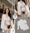 เซ็ตเสื้อคอปสายเดี่ยวบราลูกไม้สีขาว มาคู่กับกระโปรงสอบตัวสั้นคุลมลูกไม้ฉลุ