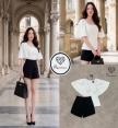 เซ็ตเสื้อแขนค้างคาวสีขาว มาคู่กับกางเกงขาสั้นสีดำ รุ่นนี้ผ้าดีใส่สวย
