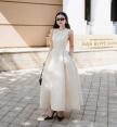 เดรสแขนกุดตัวยาวสวยทรงดี ตัวเดรสมาในผ้าเรียบเนื้อสวยมีน้ำหนักทิ้งตัวสวย